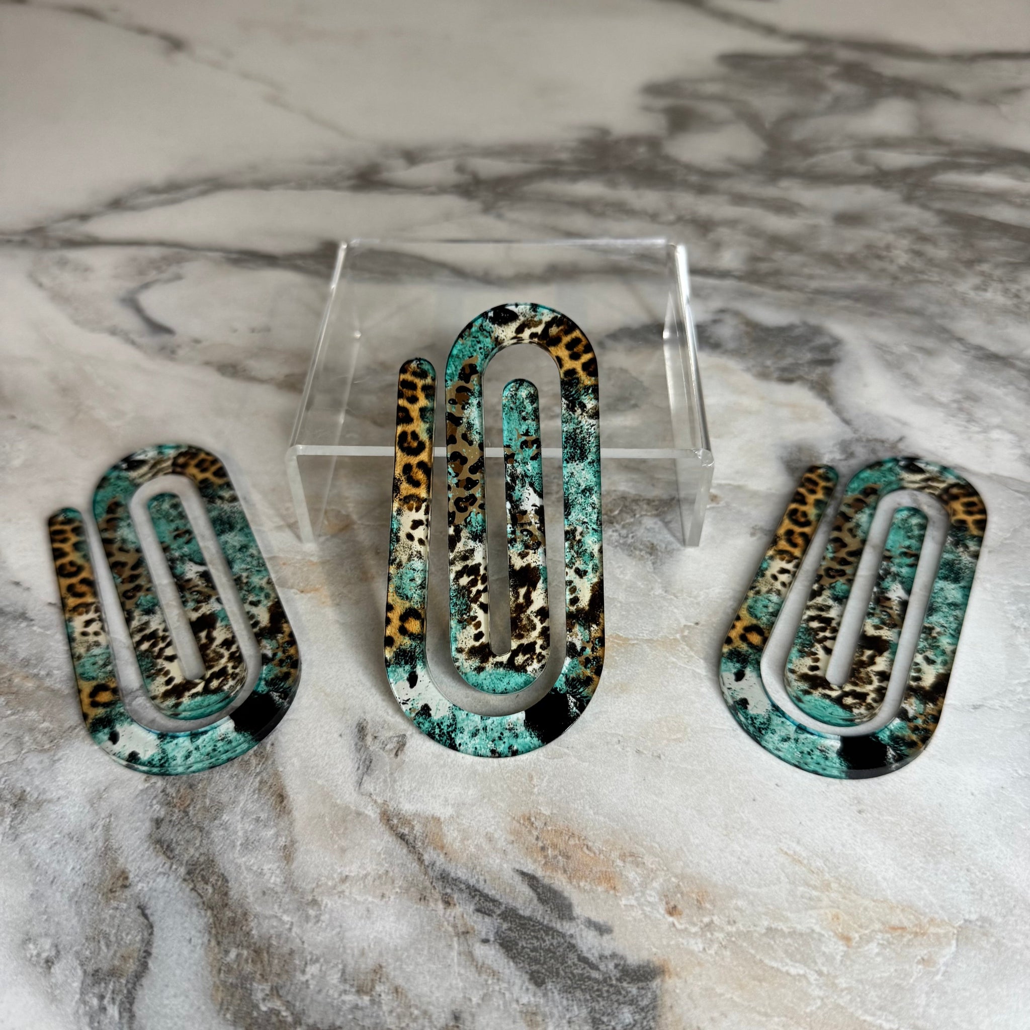 • Load image into Gallery viewer, Jumbo Paperclip - Turquoise Cow Animal Print
