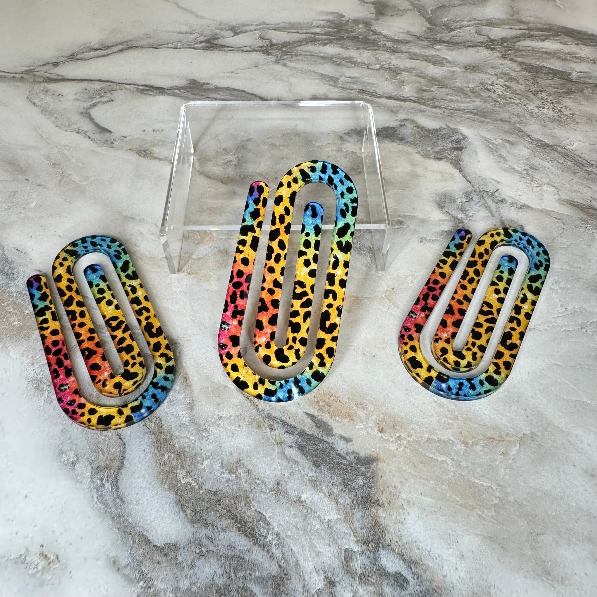 • Load image into Gallery viewer, Jumbo Paperclip - Yellow Blue Pink Animal Print