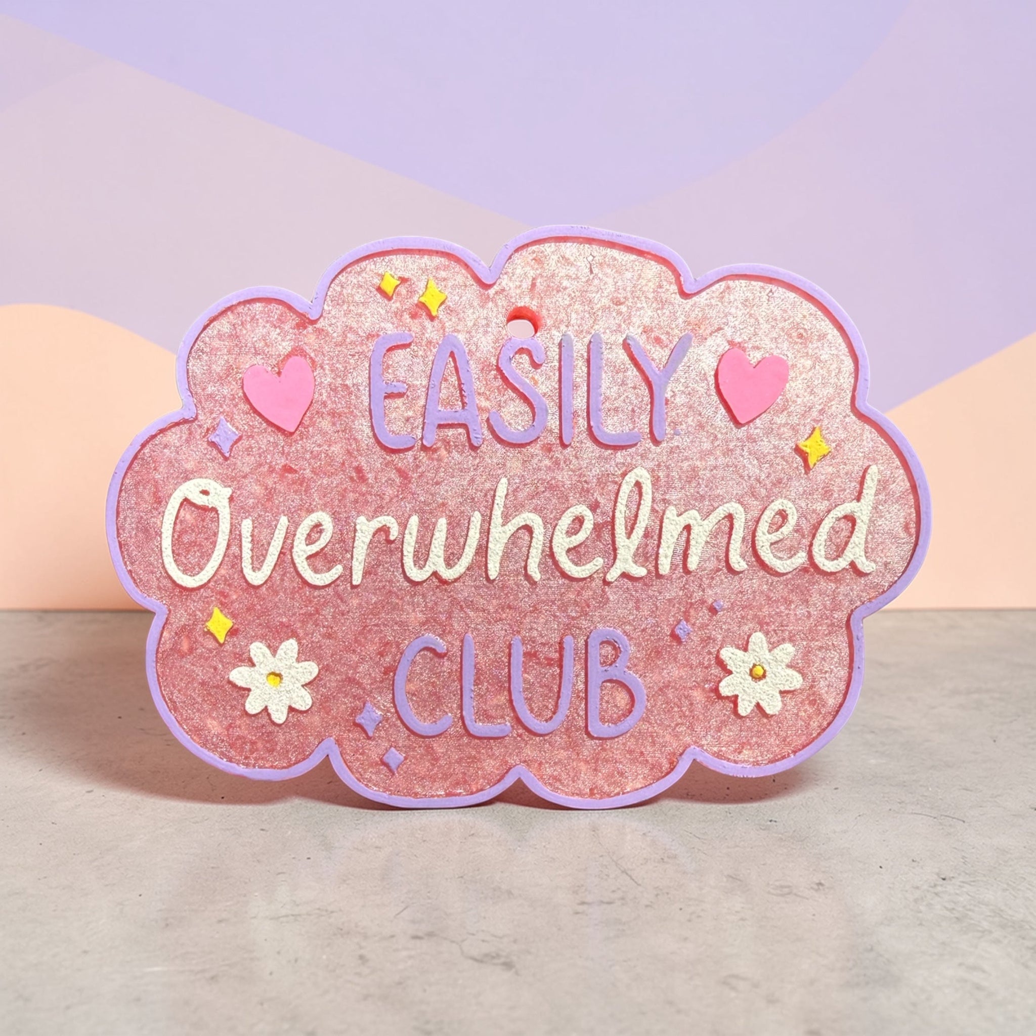 For those moments when everything feels like too much, this "Easily Overwhelmed Club" freshie is your witty companion. Handcrafted and made to order, it features a playful design that celebrates the shared experience of feeling stretched thin. Each freshie comes with an elastic string for easy hanging and arrives in a scent-proof bag to keep it fresh. Perfect for your car, locker, or workspace—a humorous reminder that you're not alone.